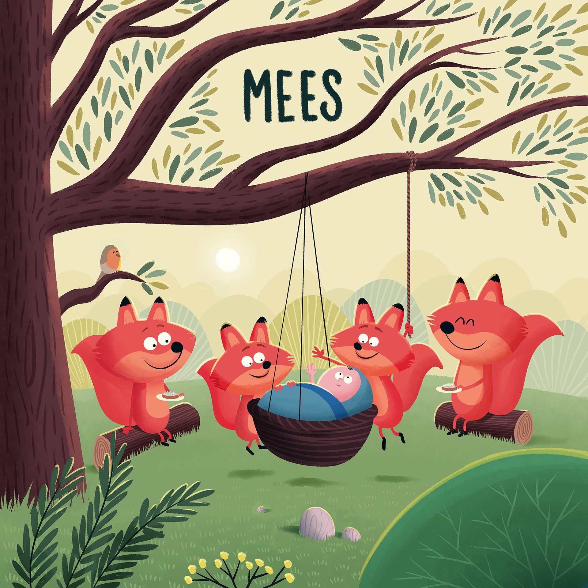 De tweelingbroertjes van Mees zijn maar wat blij met zijn komst! Dit geboortekaartje op maat maakte ik in opdracht, met vosjes en een nazomers sfeertje.