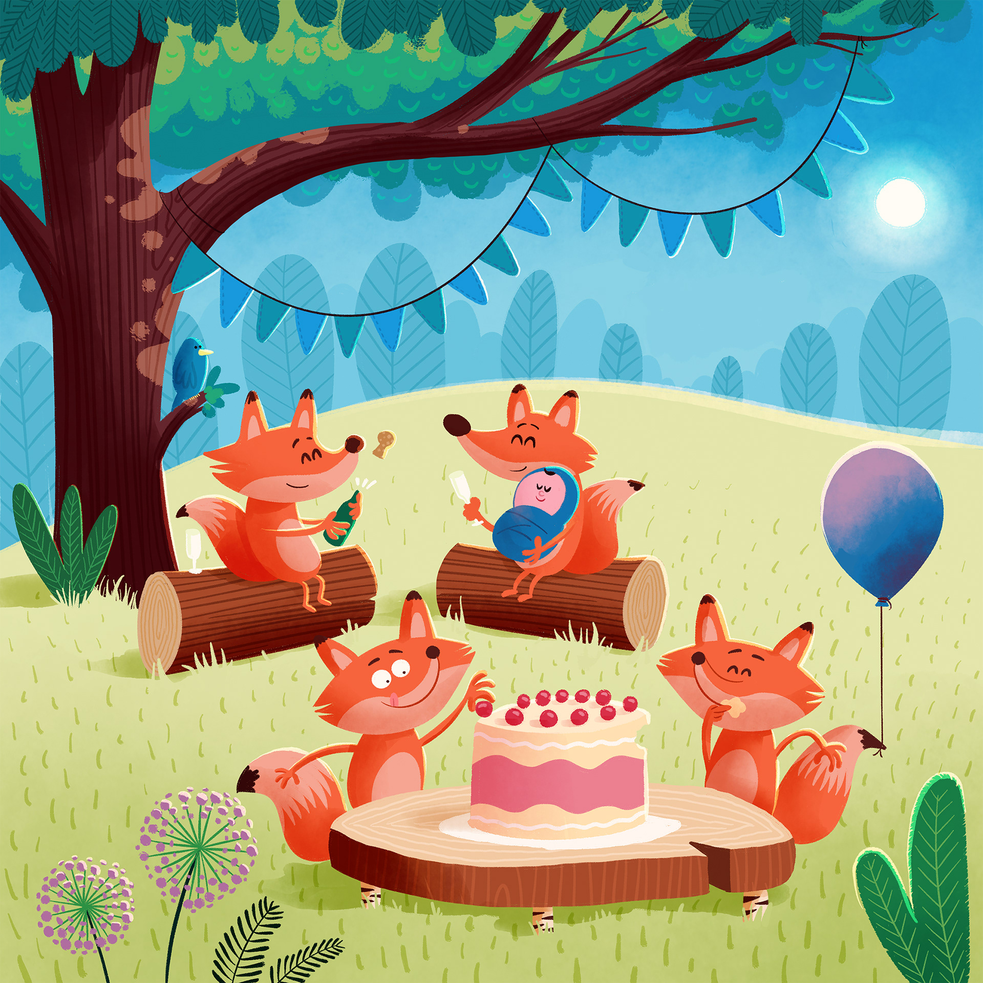 Een zomers geboortekaartje, waar stiekem van de taart wordt gesnoept...